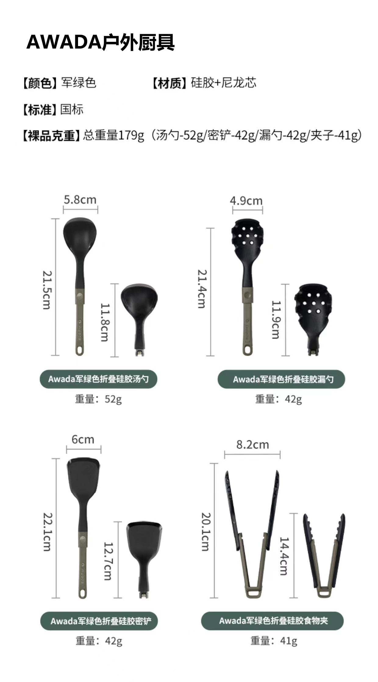 AWADA outdoor camping portable folding 3 tableware kitchen utensils soup spoon fish shovel rice spoon